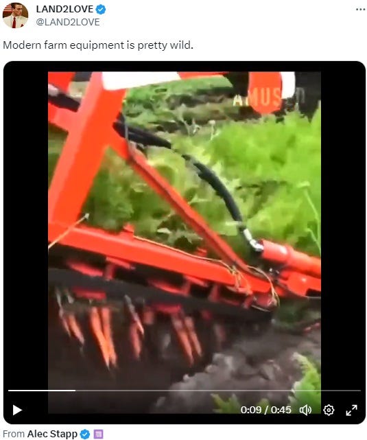 The clip also reminded me of Bugs Bunny singing, “Oh carrots are divine. You get a dozen for a dime. It’s magic.”