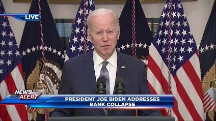 There goes NYT saying despite again when it means “because of.” The panic at the Fed to create a new program to bail out banks — er, make billionaire depositors whole — was all we needed to know that once again, Biden led us to another economic catastrophe.