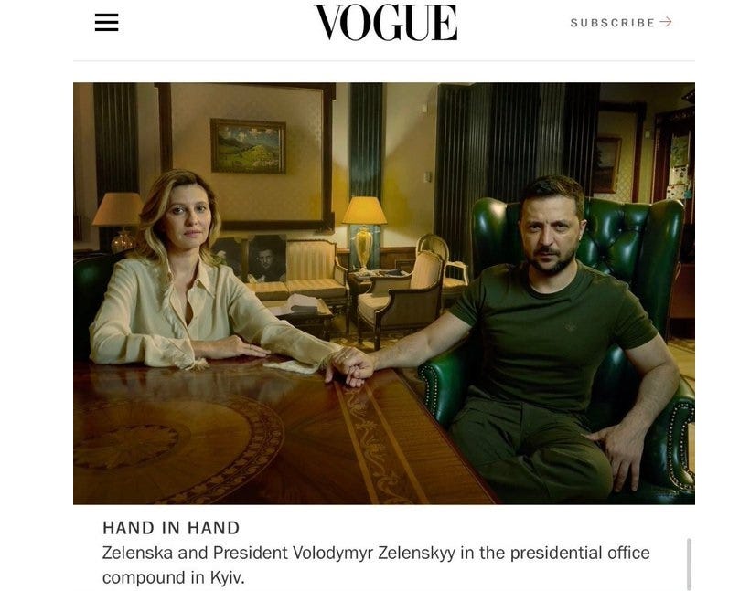 We suffer 5,000 miles away from the action. But Zelensky’s wife made the cover of Vogue and Congress gave him $100 billion in unmarked bills and military equipment, so somebody in the West is making out like a bandit.