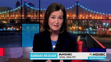 That would be MSNBC legal analyst Barbara McQuade, a University of Michigan law professor. I am not saying she is kooky. I just want her to lend me her comb.