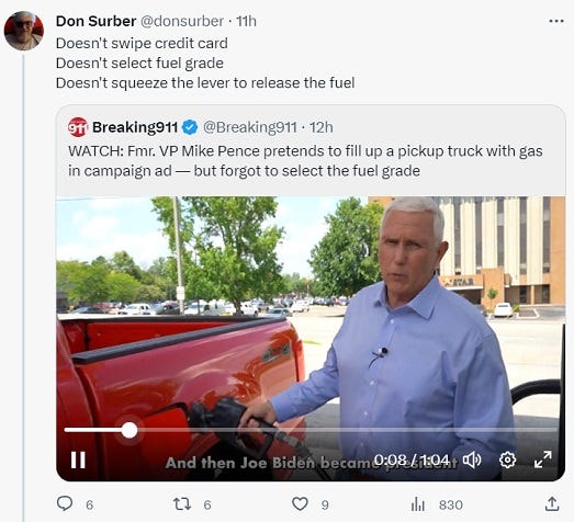 Farmer Mike Pence released an instructional video on how not to pump gas.