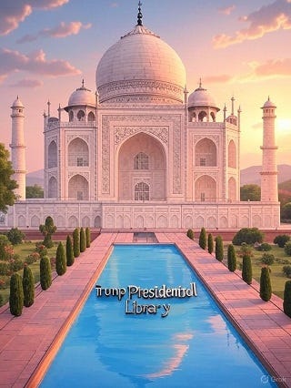 Trump settled lawsuits with ABC and CBS for $30 million donated to his presidential library. In light of this latest media lie, architects have upgraded their plans for the Trump presidential library as shown above.