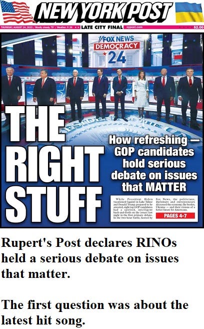 ITEM 3: While RINOs debated and pretended the nomination is not sewn up, Tucker Carlson posted an interview with Donald Trump that drew 75 million clicks (according to Elon Musk) while the Fox show was on.