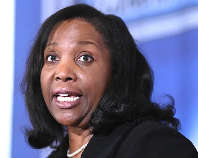 She is suing to keep her phony baloney job. I am no lawyer but it should be an open and shut case because all presidential appointees should serve at the will and pleasure of the chief of the executive branch of the federal government. But district judges have way too much ego and way too little oversight.