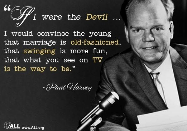 On April 3, 1965, a mere 57 years ago, Paul Harvey gave a commentary on ABC radio entitled, “If I Were The Devil,” in which he laid out Satan’s plan for America. If you have never heard it, I suggest you listen to him as you read this because all of what he said indeed came true. Most men try to figure out what God’s plan is. Harvey worried about what the devil was up to.