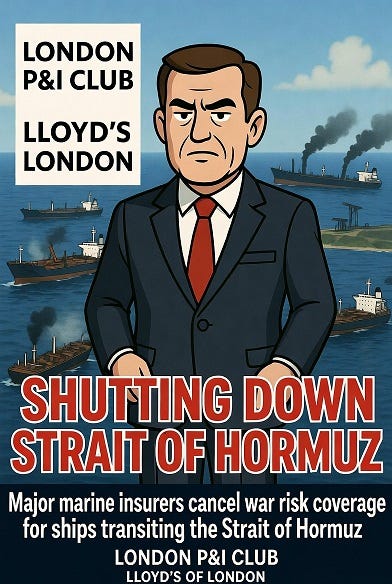 Not so fast, my friend. Insurers in London shut the oil tankers down by informing their owners that policies would be suspended during the duration of the war. Insuring the tankers became high risk, low reward. That is how insurance works. Insurers take the risk and are rewarded with your premiums as well as the money they make from investing those premiums.
