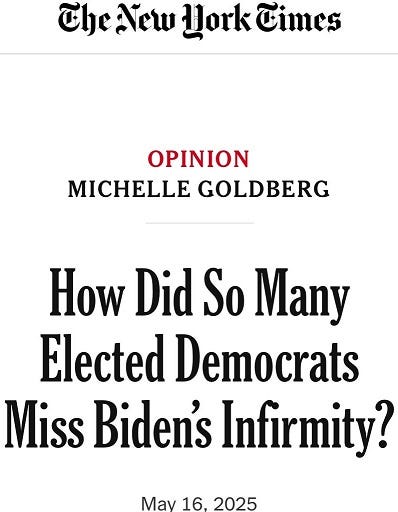 So they knew the lights were on but he was not home. Everyone did. Democrats now want to exorcise FJB from their party. He is their sacrificial old goat who takes with him the blame for the ridiculous campaign of Cackling Kamala and Tampon Tim.