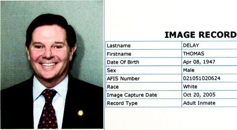 On October 20, 2005, DeLay had to pose for a mugshot after a Democrat prosecutor indicted him over the same kind of horseshit that Fani Willis, Alvin Bragg and Jack Smith are indicting him on.