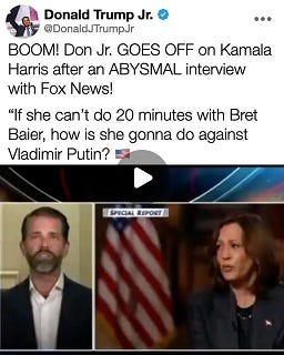 “Kamala participated in a one-person debate on CNN and she lost.”