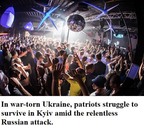 CBS reported, “Despite the missiles, Ukraine's nightlife is rocking. Bars and clubs are full. We visited one and found the place jumping, with music pumping, drinks flowing freely and young Ukrainians dancing like there's no tomorrow.