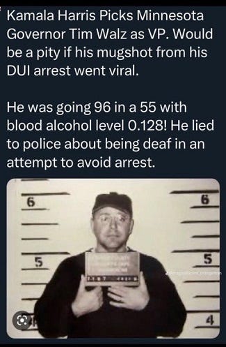 Then came the crash: Crazy Tim Kaine, Kamala and now Walz who honeymooned in Red China (take that, Bernie Sanders).
