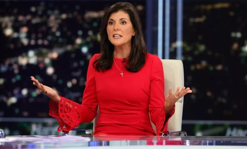 Nikki Haley... hail no! We don’t need her. We need a patriotic powerful leader who will take all the slings and arrows and stand firm and resolute. America first! Jail all the evil ones that are destroying our beautiful America. Pull no punches! Do shat it takes. Damn the torpedoes. Restore our constitutional republic. End of discussion. Trump remains my man!