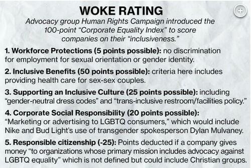 “At stake is their Corporate Equality Index — or CEI — score, which is overseen by the Human Rights Campaign, the largest LGBTQ+ political lobbying group in the world.