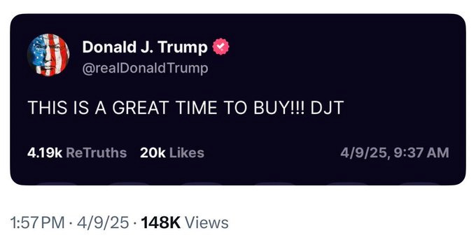 Trump woke up at dawn on Wednesday and tweeted at Truth Social that today would be a good day to get back in the stock market.